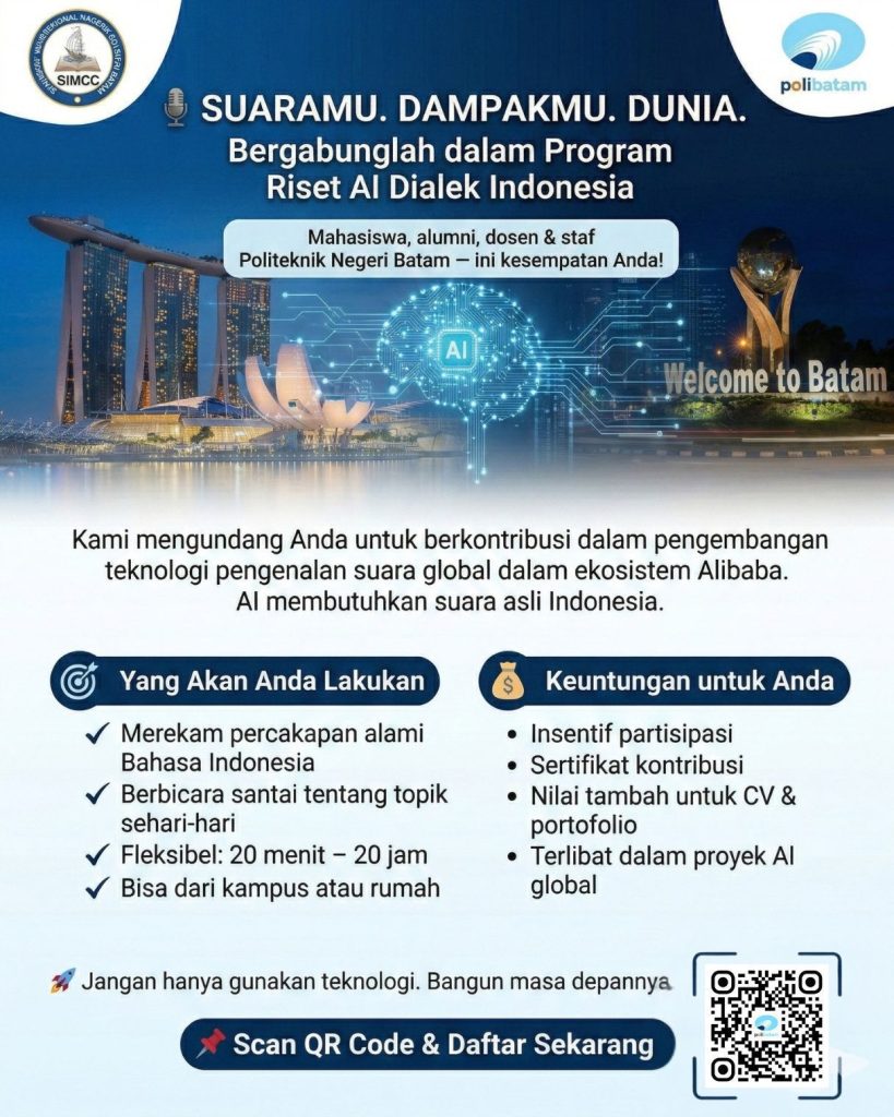 Alibaba x SIMCC x Politeknik Negeri Batam invite you to participate in the Indonesian Dialect AI Research Program.